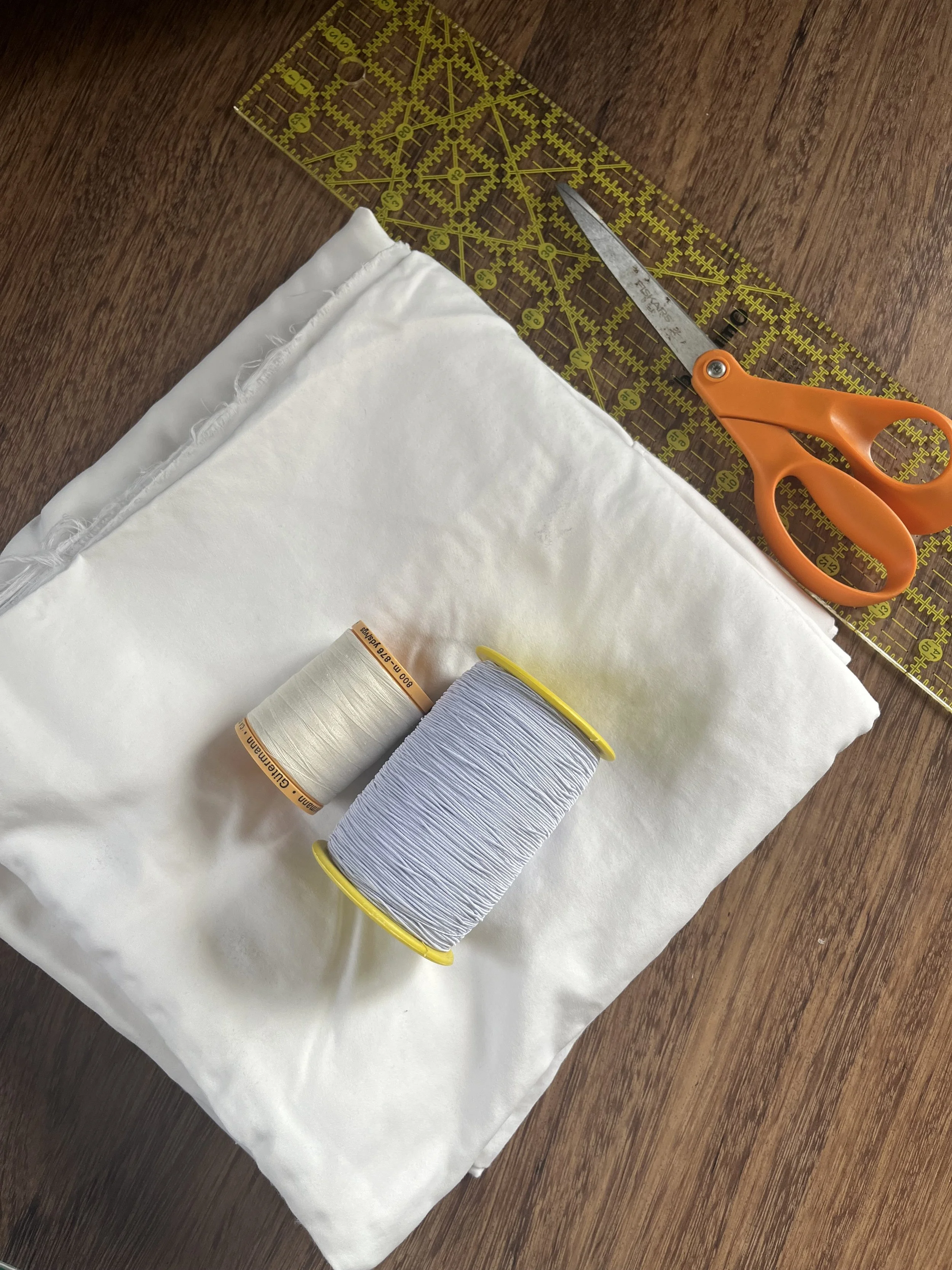 All fabric is sourced secondhand. Materials are dyed or left as is to be created into patch work or block printed.