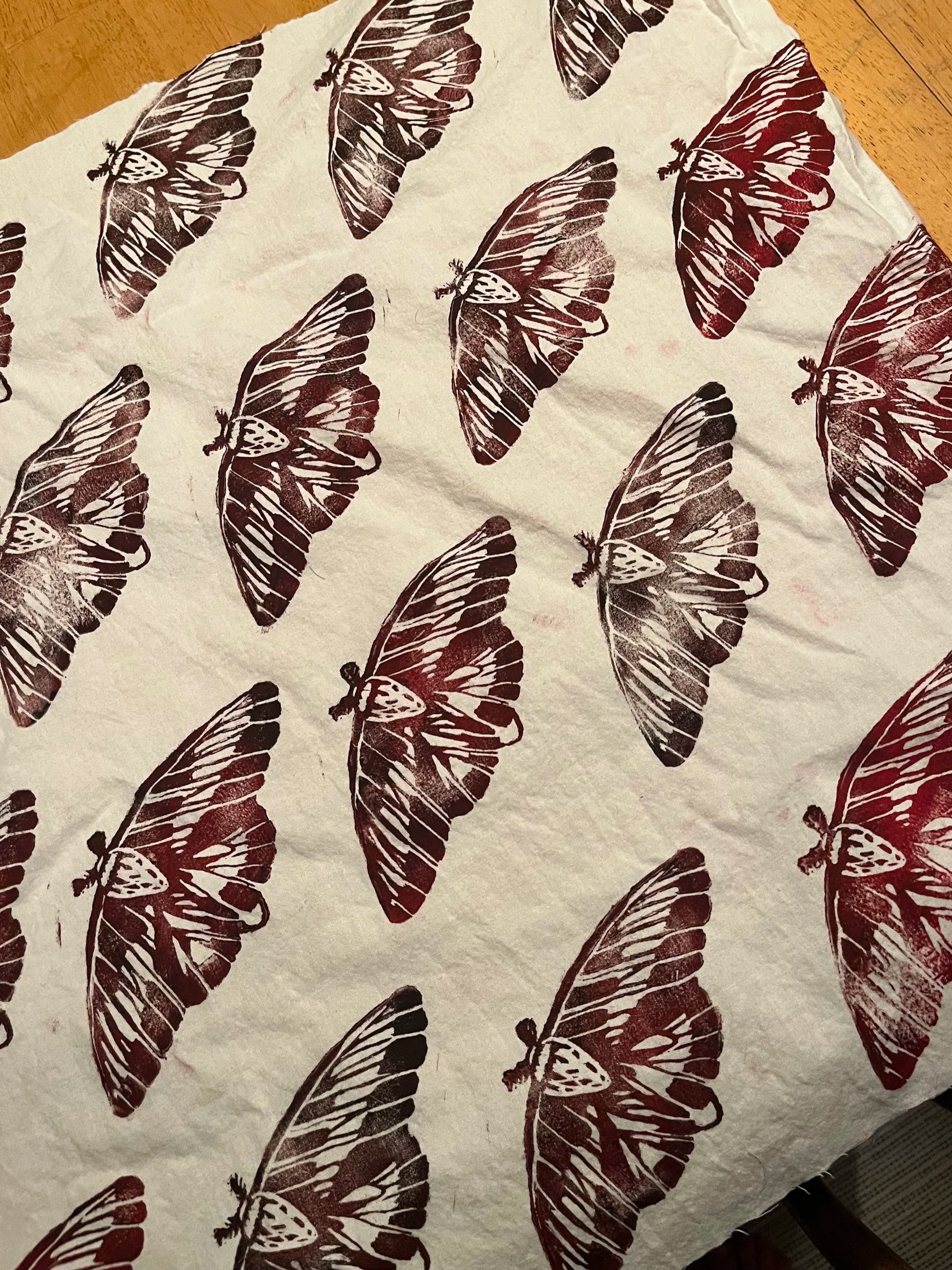Block printed sacks are made from hand carved rubber and printed onto fabric.